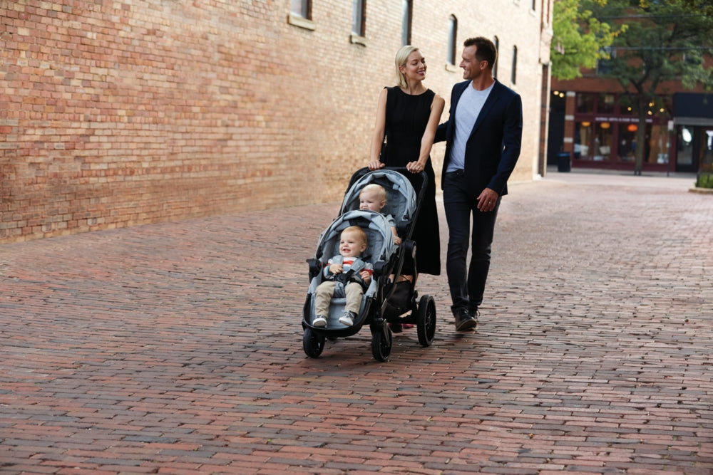 My father-in-law is constantly teasing us about our “Cadillac” of a stroller. I’m sure there are a lot of reasons he references it to that, but I’m pretty sure the number one reason is the modular seats. I absolutely LOVE the seat position variations! The possibilities are basically endless when it comes to the seating arrangements for my children. Included in the awesomeness that are these seats, I’d also like to add that the recline is perfection. This makes options even more functional for a family like mine and families of all other shapes and sizes!