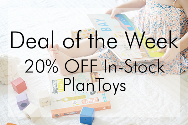 This week all of our PlanToys products are 20% off with code PLAY20! PlanToys is all about sustainability. This company makes adorable toys with fantastic colors and wooden goodness. Each of their products are made safe with non-toxic dyes and children’s safety in mind. It is crucial for kids to begin working on their cognitive skills, fine motor skills, and pretend play at an early age, and these fun toys are perfect for the occasion! Below is a highlight of a few of my favorite PlanToys items, but many more are available and ON SALE, time to shop!