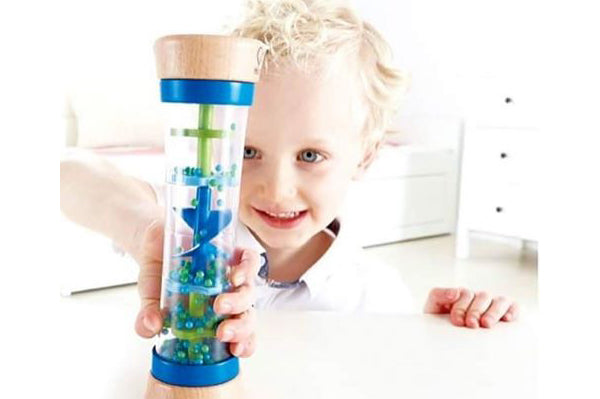 Stimulate your toddler's senses with this amazing rainstick: Beaded Raindrops. Sound, sight, and touch are all part of the experience and it comes in both the Blue style, and the Red (pictured below).