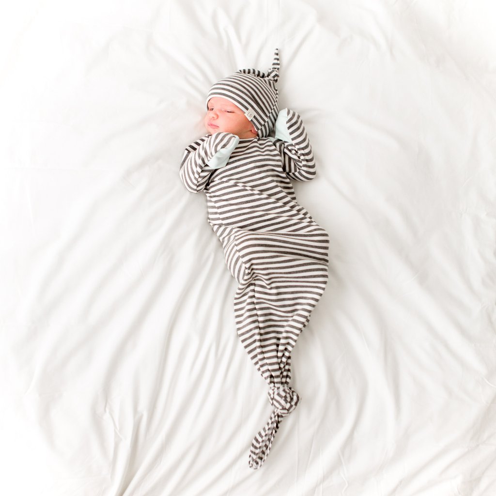 If your babe needs those little ears kept warm in colder weather, the knotted hat in heathered cream is the most adorable add-on for any outfit. The neutral color won't clash with what they're wearing either! It's going to make your heart melt to see them in that little baby beanie!