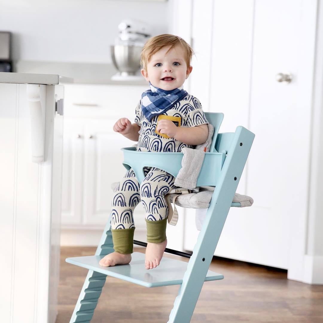 If the Tripp Trapp isn't exactly your style, you can always opt for the rounder and softer design of the Stokke Baby Chair, which utilizes accessories added to the Stokke Steps Chair. Such accessories include the Baby Chair, which allows your baby to be right at the table in a secure and fitted seat just their size. This chair also allows for your child to be part of the family dinner scene throughout the years while only requiring some minor adjustments and accessories. Although the white seat is pictured above with wooden legs, you can now also order the legs in Hazy Grey!