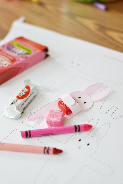 - Fold the bunny's arms over the candy to make it look like the bunny is hugging the candy