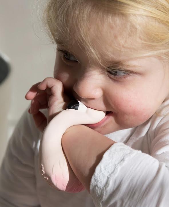 Our favorite remedies were frozen peas and yogurt tubes, tylenol or ibuprofen, and lots of snuggles with mom and dad! Who knows when June will actually start popping them through, but she has been chewing on her hand and drooling an impressive amount the last few weeks, so maybe it will be happening soon? If you are on the teething train or will be in the future, be sure to check out all of the adorable teethers in the store or on the website!