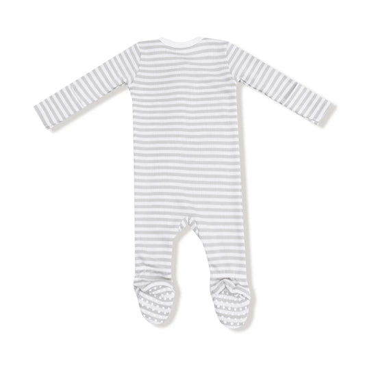 Angel Dear Ribbed Modal 2 Way Zipper Footie - Stripe - Mineral Grey/ White