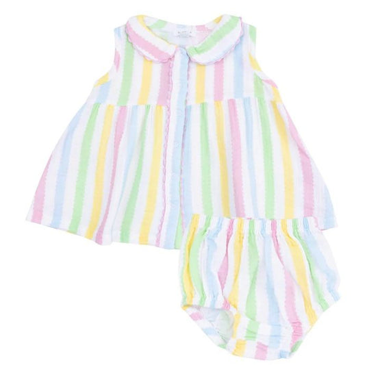 Angel Dear The Jill- Peter Pan Button Front Dress W/ Ric Rac Trim And Dc - Ric Rac Stripe