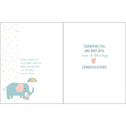 Gina B Designs With Scripture Baby Greeting Card - Elephant on Rainbow
