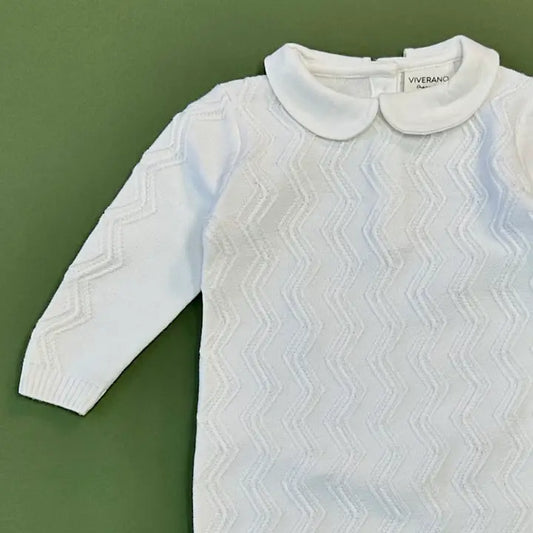 Viverano Organics Organic Knit Peter Pan Chevron Baby Jumpsuit - Dove White