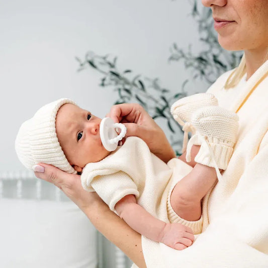 Viverano Organics Organic Cotton Milan Pastel Bobble Sweater Knit Baby Romper - Cream