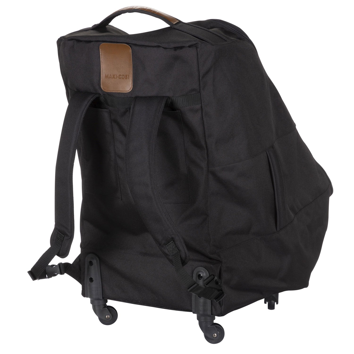 Travel with ease on every adventure with the Maxi-Cosi Wheeled Car Seat Travel Pack, which fits Maxi-Cosi convertible car seats (except for Emme 360). Its carry handle and convenient roller wheels make it easy to tote around the airport, or anywhere you’re going. With its comfortable, padded straps, you can also wear it on your shoulders as a backpack.