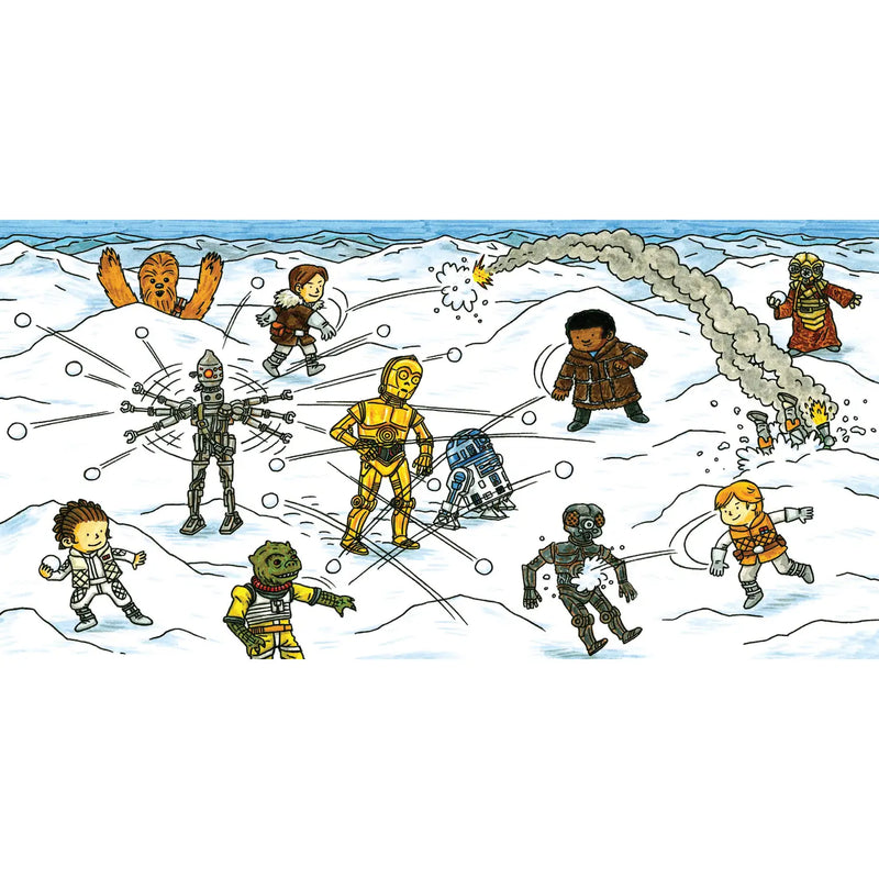 Filled with playful holiday moments—stormtrooper snowmen, gingerbread Death Stars, and Force-fueled snowball fights