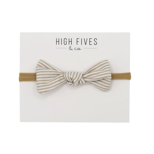 High Fives Printed Linen Knot Bow Nylon Headband