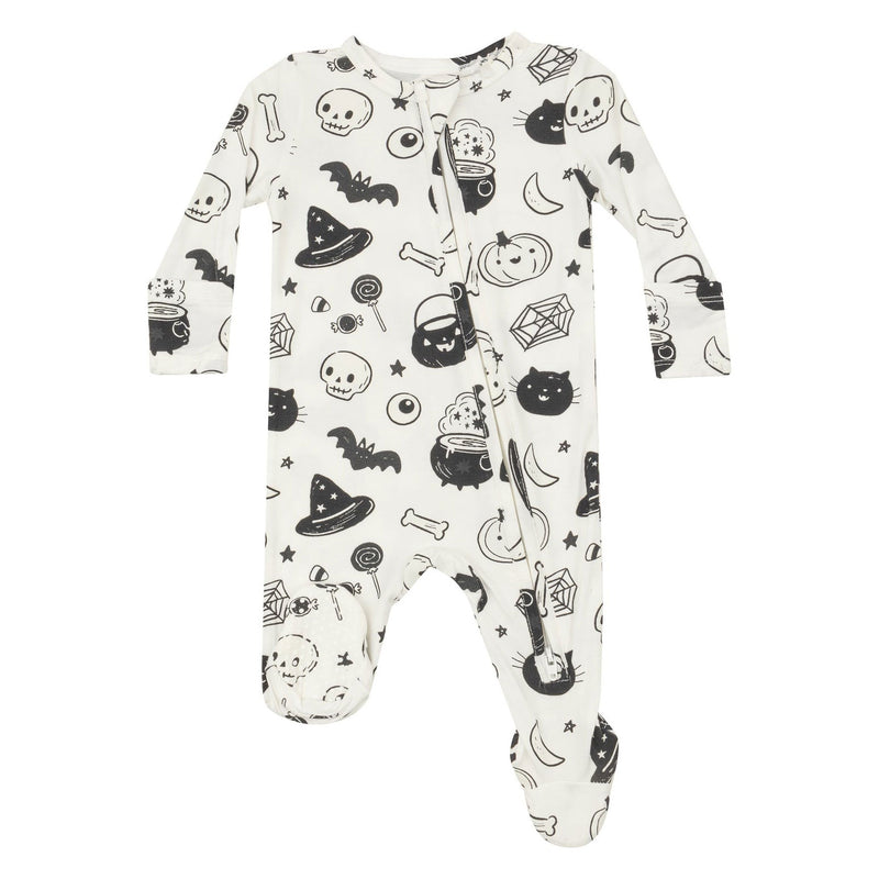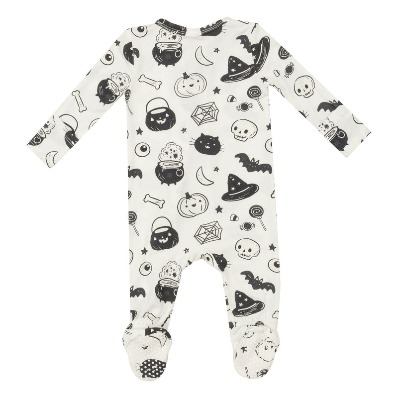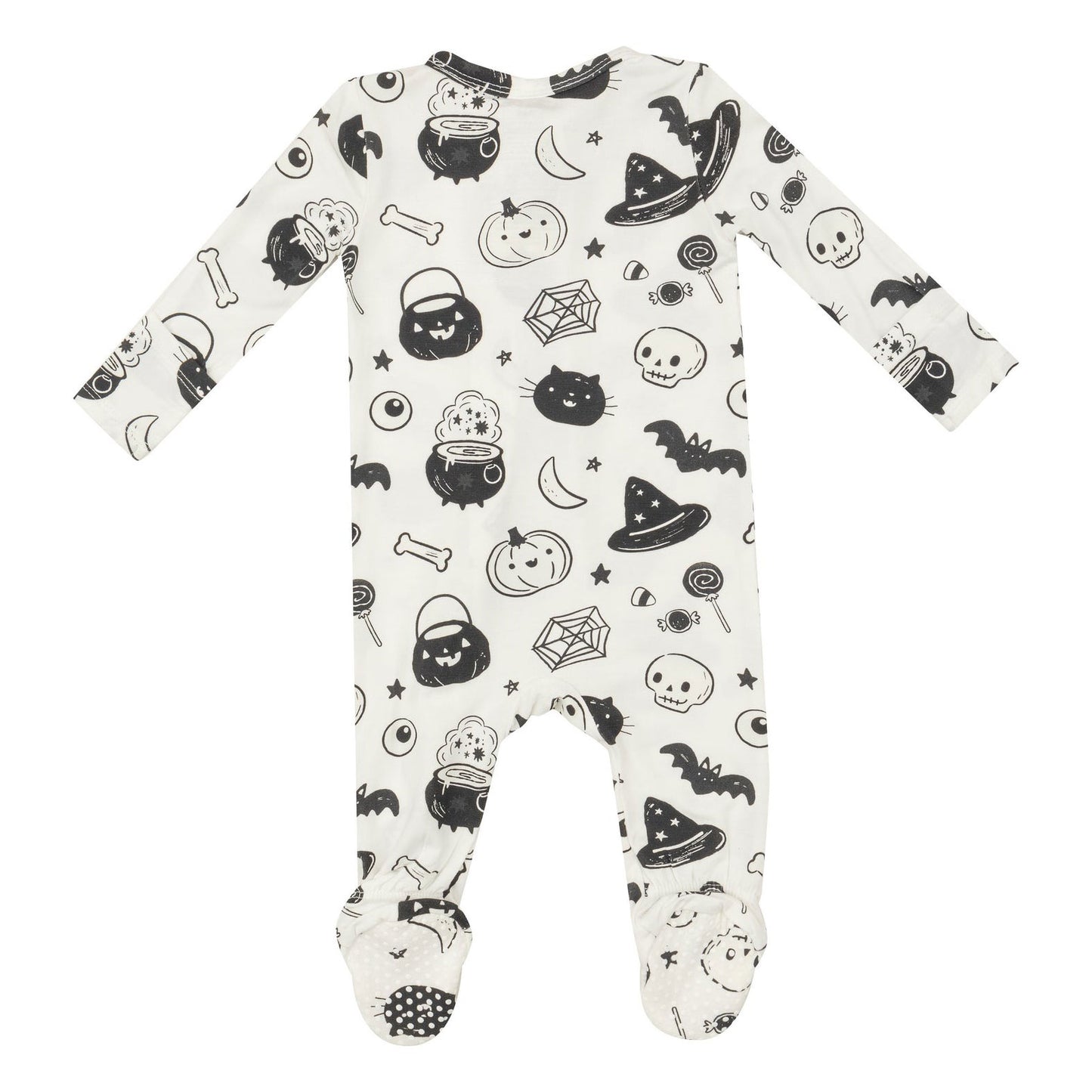 Angel Dear Bamboo 2 Way Zipper Footie - Black and White Halloween - Ivory