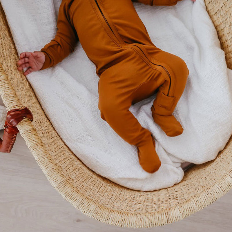 Copper Pearl Zip-up Footie - Camel