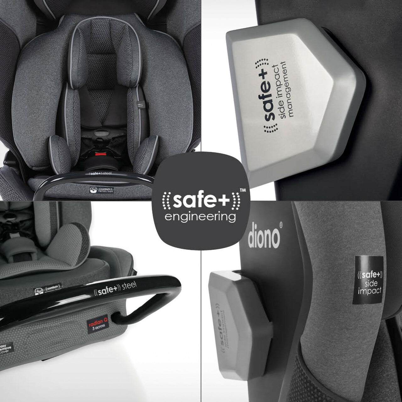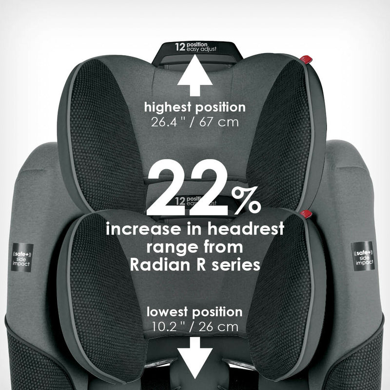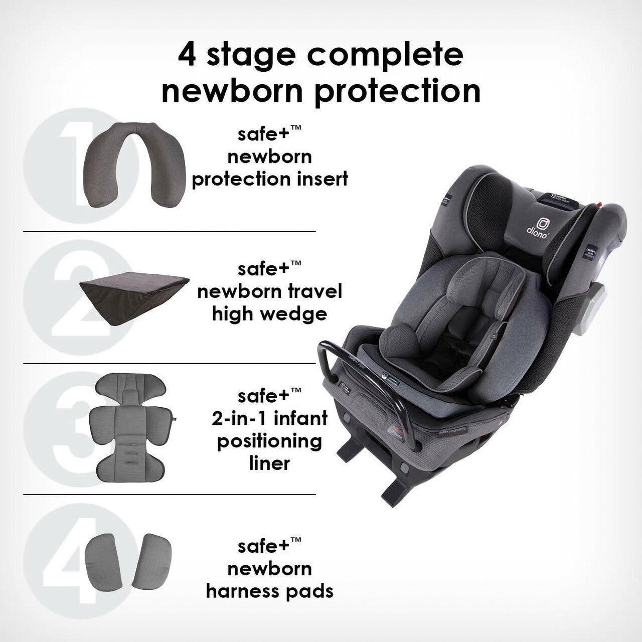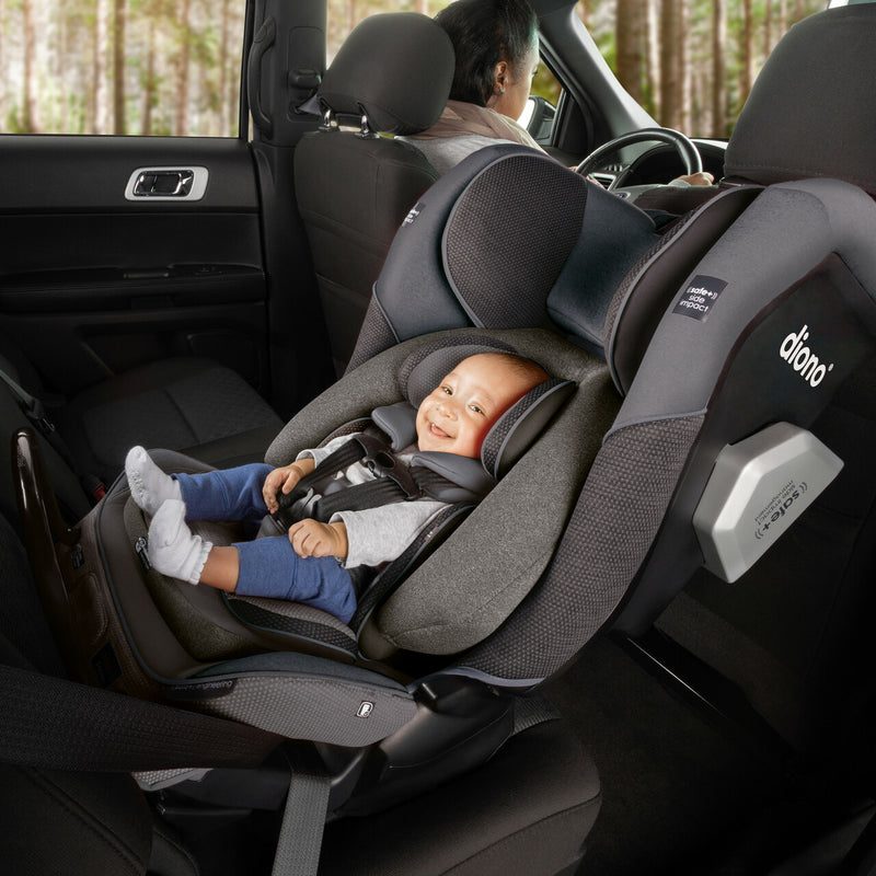 The Diono Radian 3QXT Convertible Car Seat is the ultimate 3-across, all-in-one car seat. It transitions from infant car seat to booster seat and features advanced 4-in-1 newborn protection and all new Safe+ engineering to provide the next generation in car seat safety.