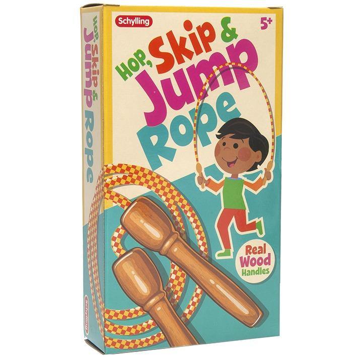 Classic Jump Rope with wooden handles and 82" rope. Imported. Ages 5 and up.