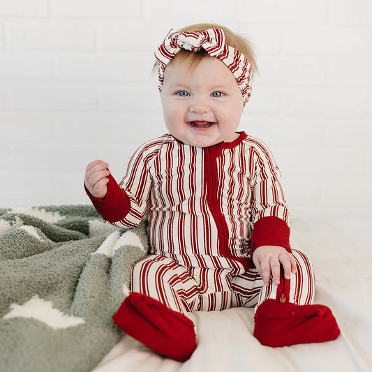 Mebie Baby Bamboo Zipper Footie - Red Stripes