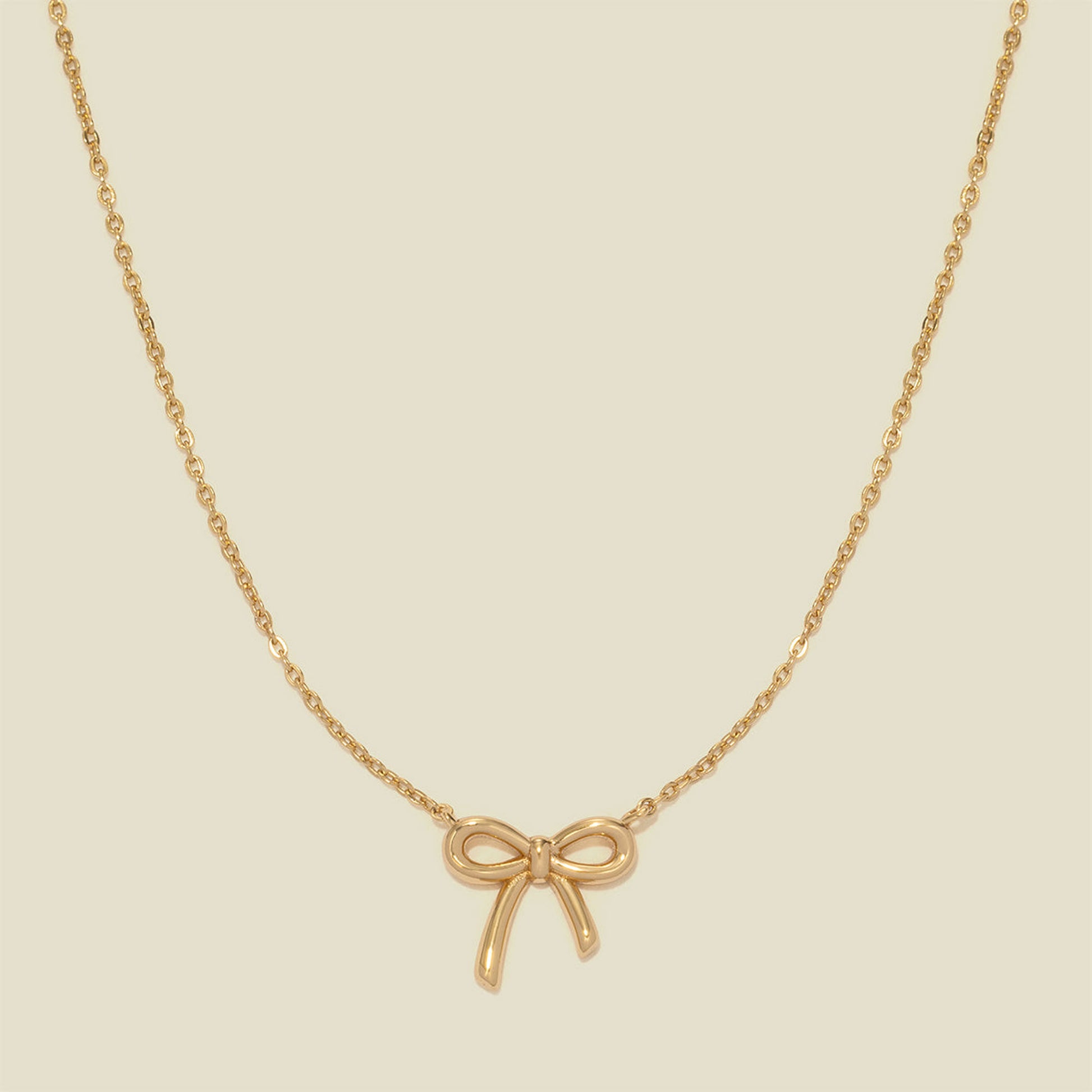 Stay true to your ties with this dainty necklace. Featuring a ribbon bow silhouette, this finishing flourish is a sweet reminder that even the simplest moments can be the ones that secure a forever kind of bond.