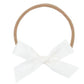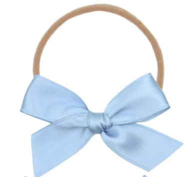 Dress your little one up with these Lou Lou and Company satin bows! Handmade by local moms from high-quality satin. This is the perfect bow for your darling little girl! Each bow is hand tied and is attached to a nylon headband. All bows are secured so they do not come undone!