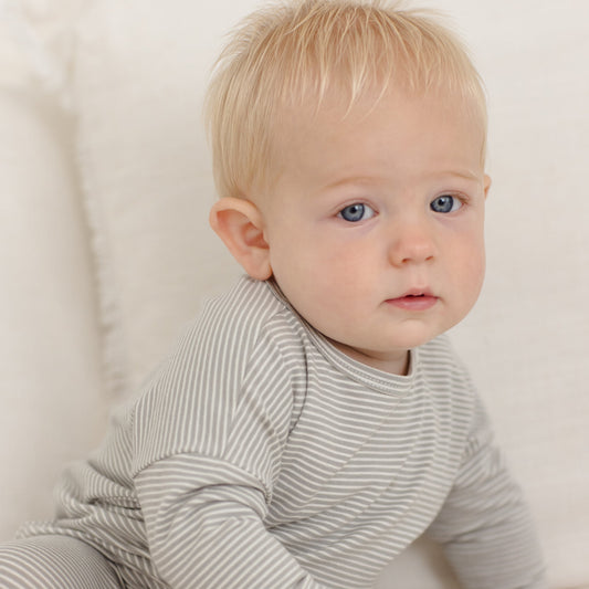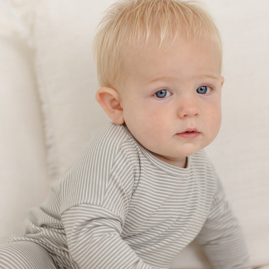 Quincy Mae Long Sleeve Tee - Sage Micro Stripe