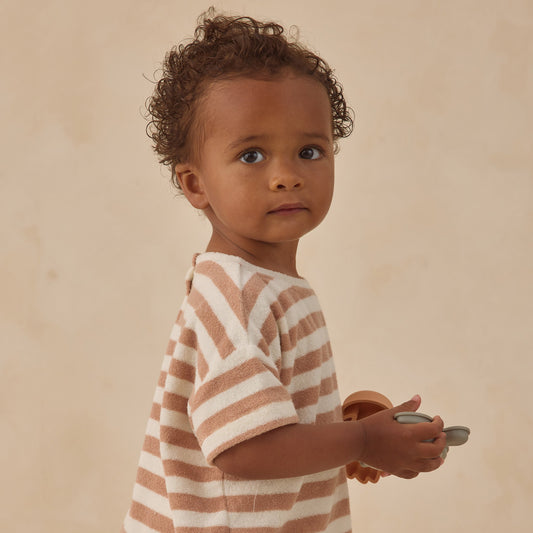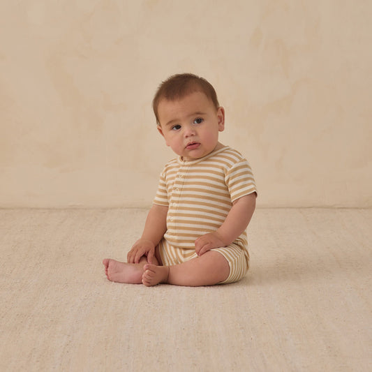 Quincy Mae Terry Henley Romper - Latte Stripe