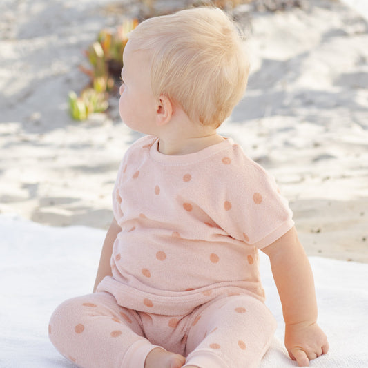 Quincy Mae Terry Tee + Pant Set - Polka Dot