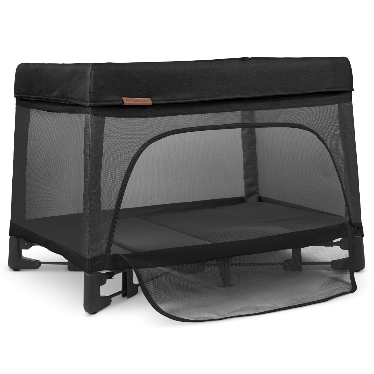 - Zip-on mesh bassinet provides a ventilated, elevated bedside solution for infants