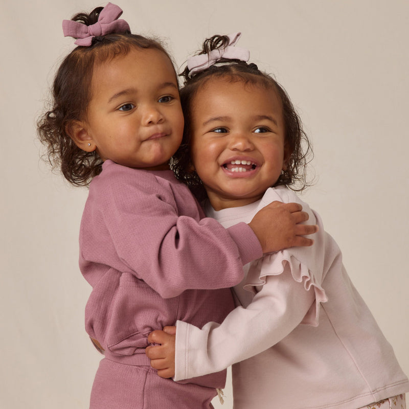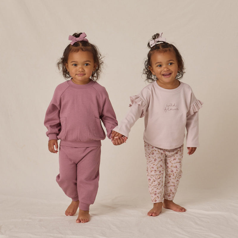 Sweet ruffles meet everyday comfort in this long sleeve tee. With a delicate wild flower print on a soft lilac base, it’s the perfect mix of playful and practical.