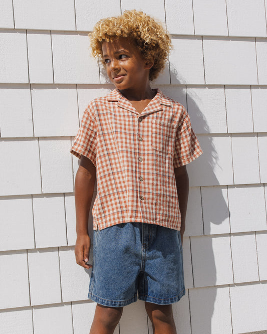 Rylee and Cru Collared Short Sleeve Shirt - Ocre Check