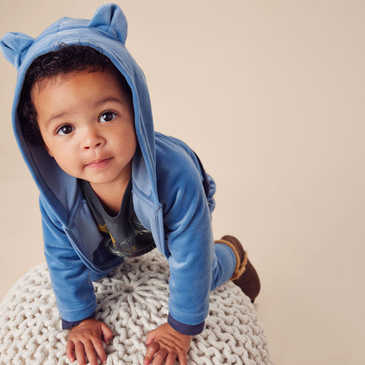 Tea Collection Bear Ears Velour Baby Hoodie - Coronet Blue
