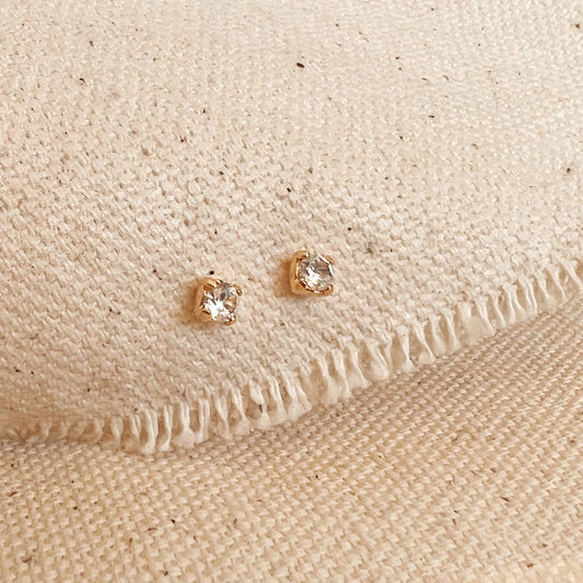 Miel & Gold Cubic Zirconia Stud Earrings 2mm 18k Gold Filled