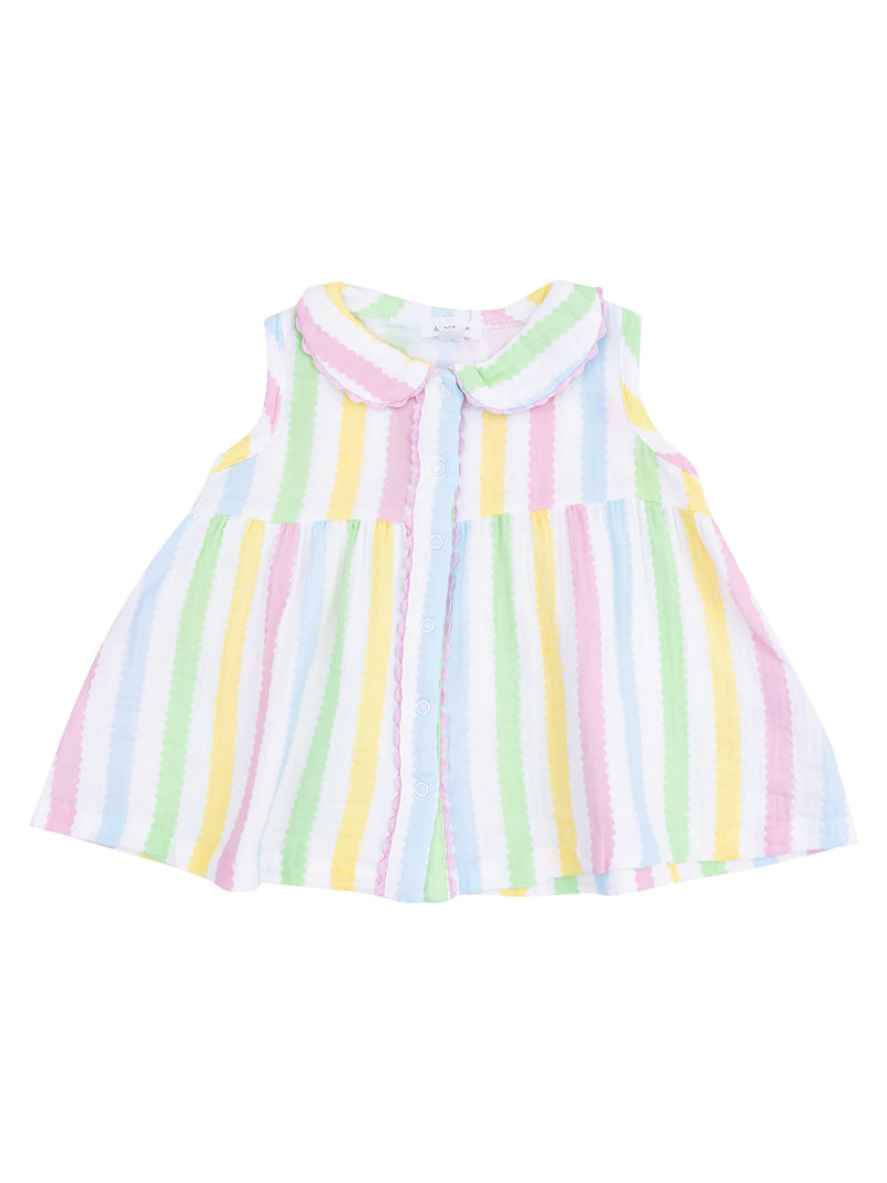 Angel Dear The Jill- Peter Pan Button Front Dress W/ Ric Rac Trim And Dc - Ric Rac Stripe