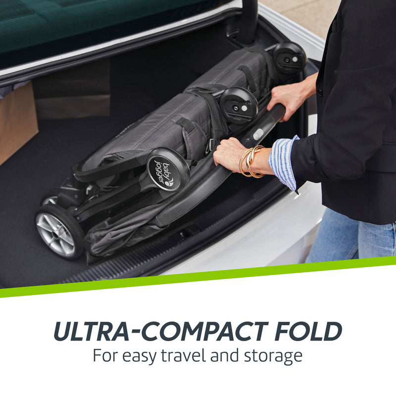 • Lightweight, compact design fits through a standard doorway, making getting around town with two easier than ever