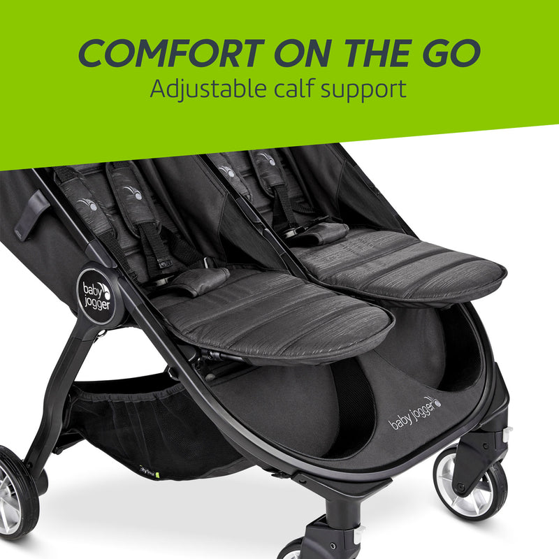 The Baby Jogger City Tour 2 Double Stroller is perfect for toting two on any adventure. With an ultra-compact fold and lightweight design, it makes it simple to transport your little ones around town. The fully featured stroller includes multiple recline positions, adjustable calf supports, UV 50+ canopies, and 2 comfortable padded seats.