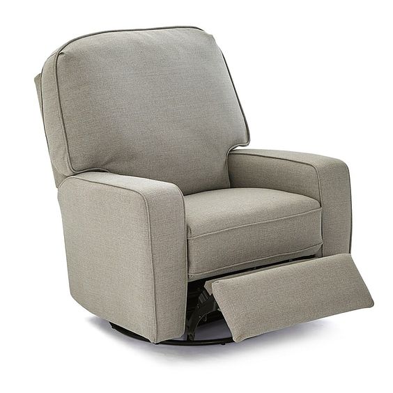 Comfort meets clean-lined style in the Best Chairs Bilana Swivel Glider Recliner. Carefully crafted of a sturdy wood and metal base, the supreme comfort of a deep seat offers plenty of support as you rock and swivel while snuggling with baby.