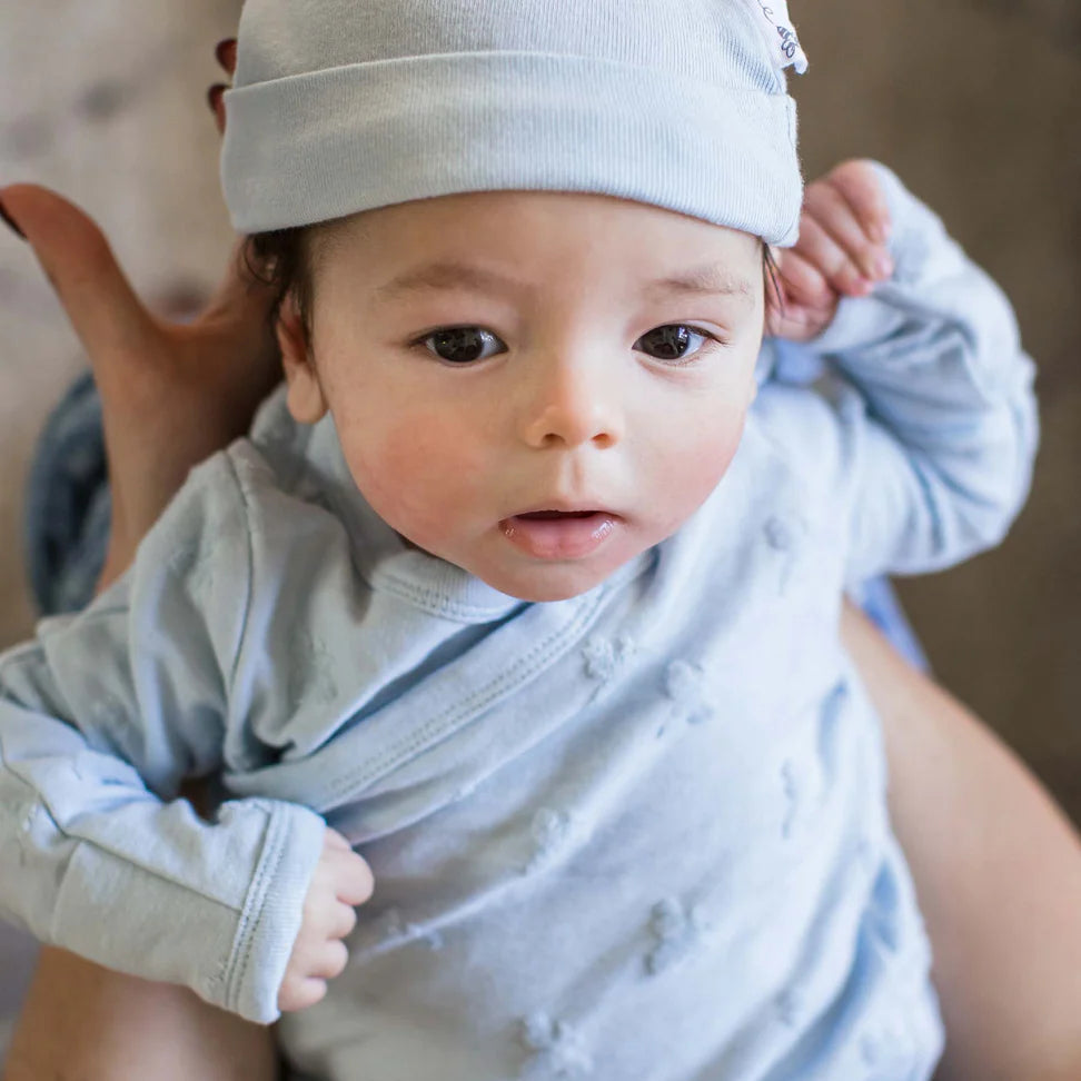 Wrap your little one in softness with this 3-piece Take Me Home Set, designed for cozy comfort and adorable style. Featuring a long sleeve wrap-style top, footed pants, and a matching top knot hat, this set is made from ultra-soft organic cotton with a charming raised terry bee detail for added texture.