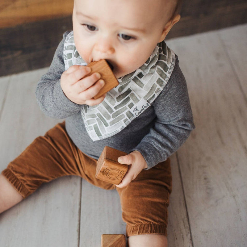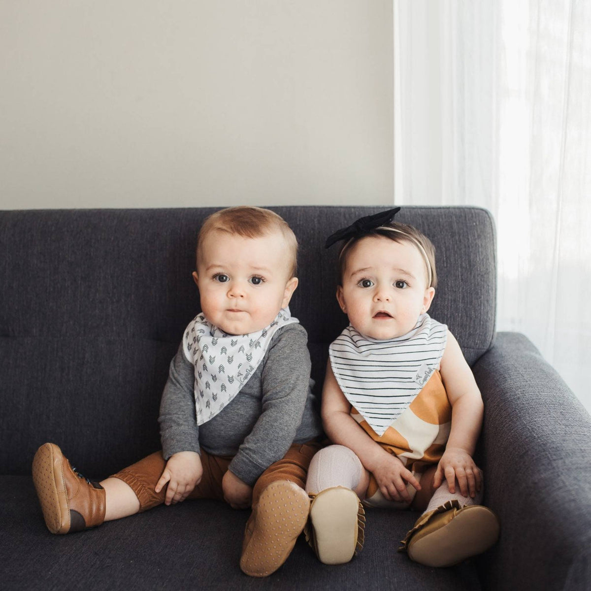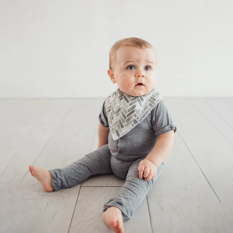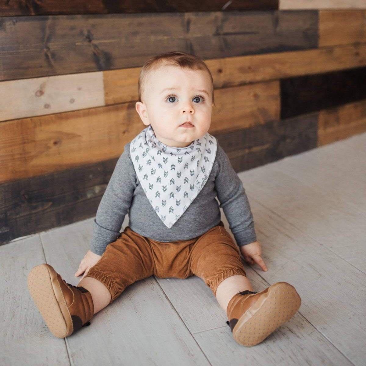 These stylish drool bibs are made of 100% absorbent cotton on the front and 100% polyester fleece on the back to keep your babe dry all day long! Featuring adorable knit fabric on the front in a variety of fun prints for every season, there's no better bib for even the drooliest babe!