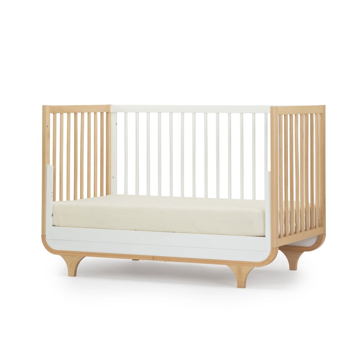 Don’t let the joyful curves and spunky sweetness of the Jolly 3-in-1 Convertible Crib fool you - this Italian-built beauty is as functional as it is fun. Complete with three different mattress settings to grow along with baby, as well as the ability to transform into a curvy, cuddle-ready toddler or day bed, the Jolly is GREENGUARD Gold certified, crafted with durable beechwood, and designed to bring joy to your family for generations to come.