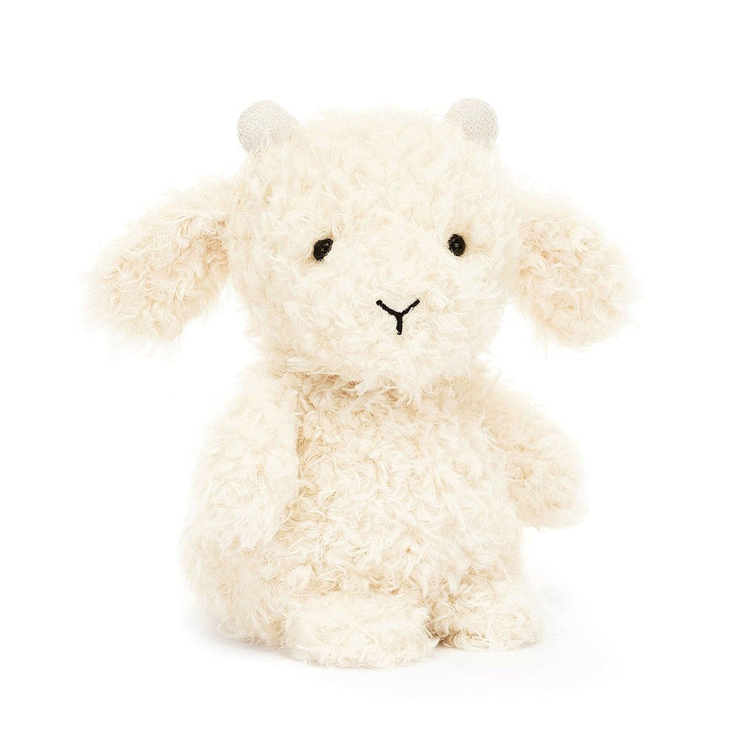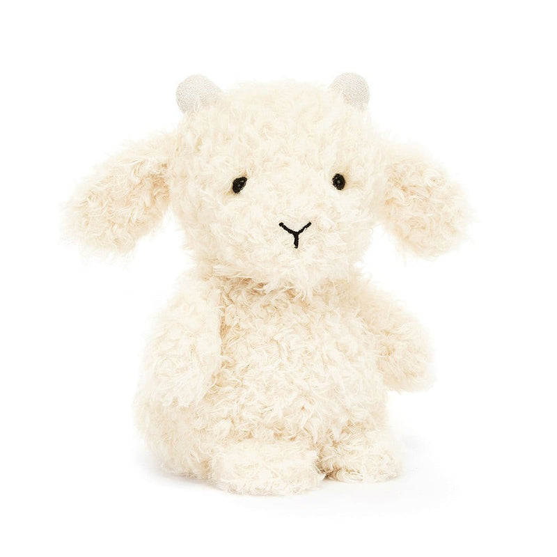 Little Goat may be wee, but this kid will climb any mountain! Adorably curly in cream fur, Little Goat has pebble hooves, suedette horns, a tiny tail and the sweetest fold ears!