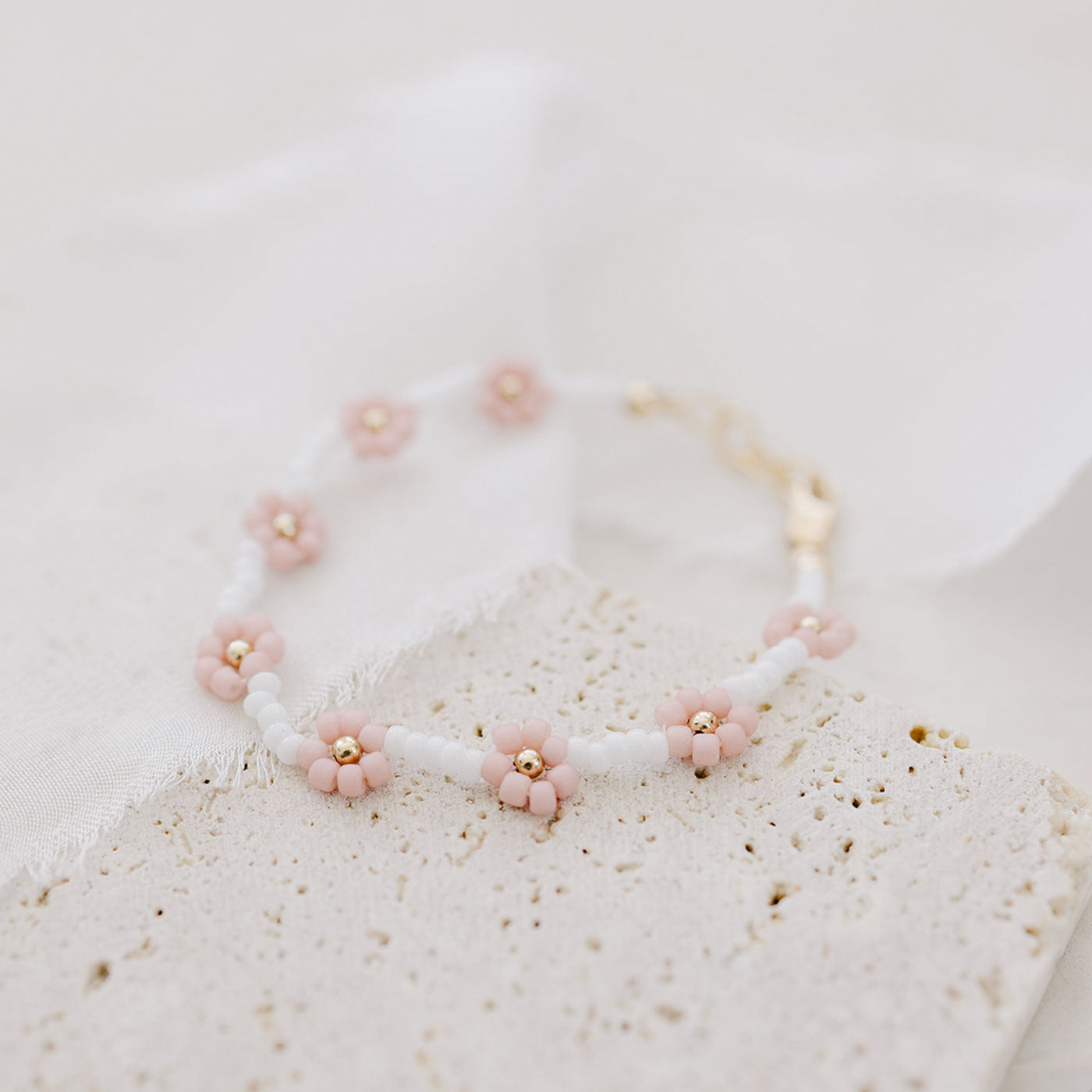 Joyful Bead Company Petal Pink Flower Bracelet - Gold