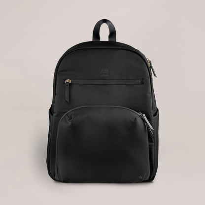 Parent life just got easier with the Deluxe Backpack from JJB by JuJuBe. This backpack’s front-pocket changing station stores diapers and wipes and includes a washable changing pad with integrated pillow—everything you need to make diaper changing quick and easy wherever you are. Feeding is simple with the insulated bottle pocket that holds any sized bottle, and additional storage compartments keep everything in its place and easy to find. The Deluxe Backpack has padded, stroller-compatible backpack straps and a trolley strap so you can travel with the little ones in comfort. When you’re organized and prepared with a backpack full of solutions, you can enjoy your time out with the kids that much more!