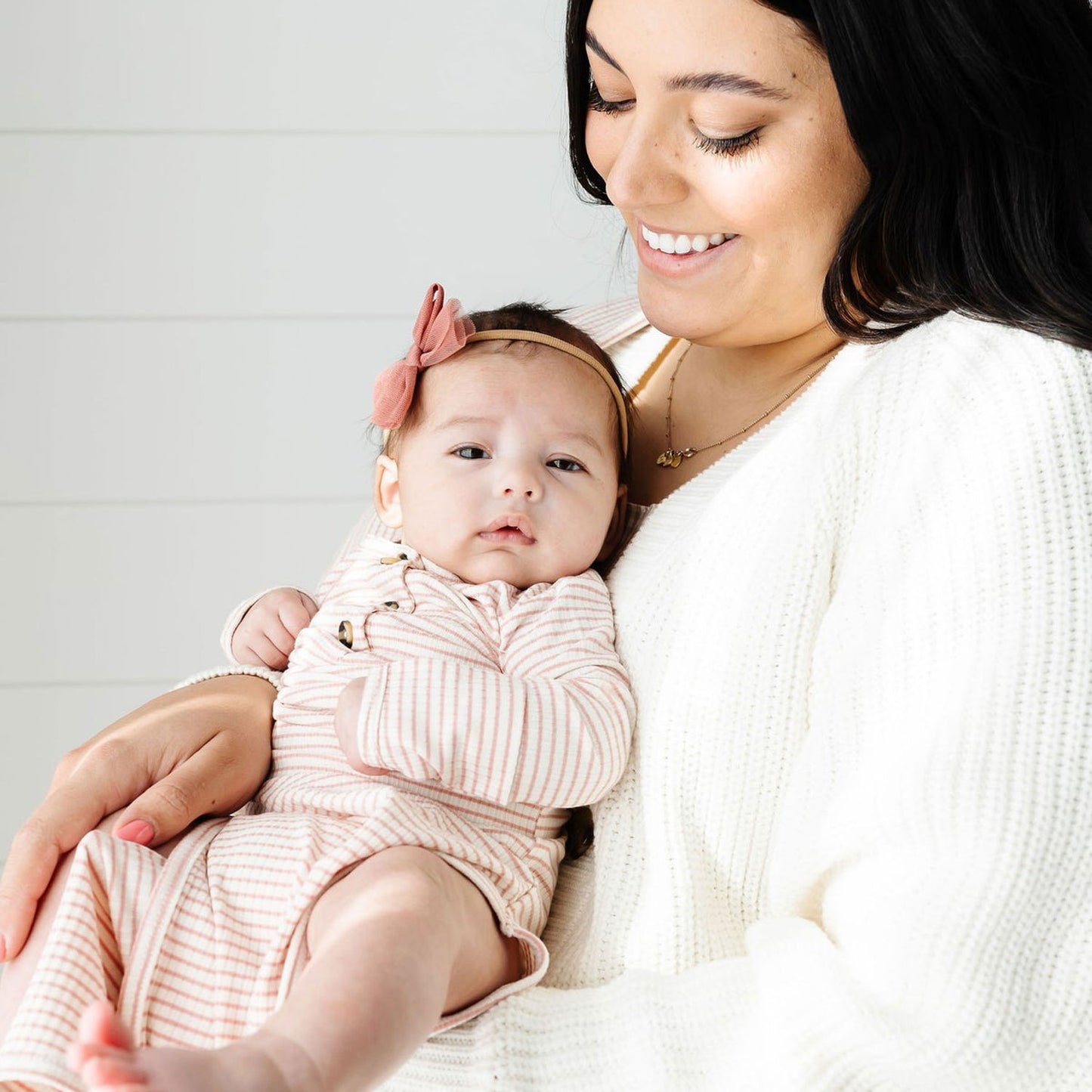 This knotted gown is the easiest tie-bottom outfit for day or night. Made for hassle free diaper changes and gentle dressing, it is designed with a button-down front and tie bottom for simple closure (no more snaps at 2 am!). Fold-over wrist cuffs are another thoughtful finishing touch.