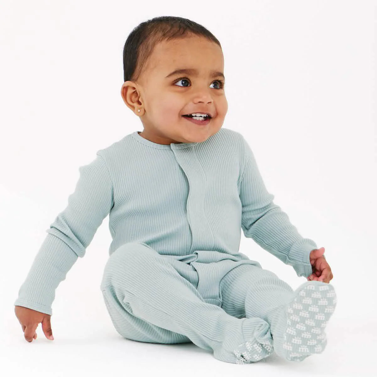 Organic Cotton Magnetic Footie – Mist Ribbed