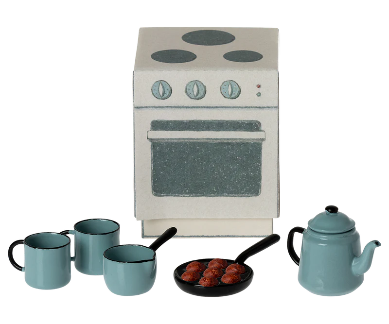 A charming little kitchen set inspired by Scandinavian tradition. Madam Blue’s Favorites includes everything needed to serve up cozy winter treats, all tucked inside a sturdy paper box designed to look like a sweet little stove.