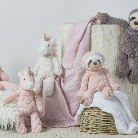 Soft, sophisticated, and oh-so-snuggly, this blush unicorn is a dreamy addition to any nursery or toy collection. With its muted tones and luxe fabric, it’s a timeless plush made for cuddles and display alike.