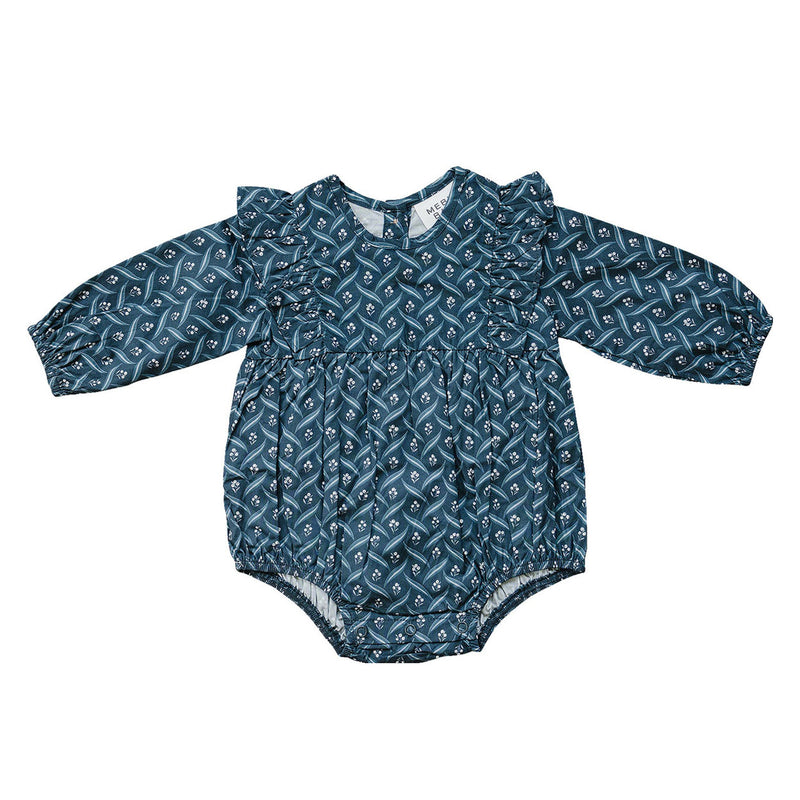 Mebie Baby Long Sleeve Ruffle Bubble Romper - Navy Berry