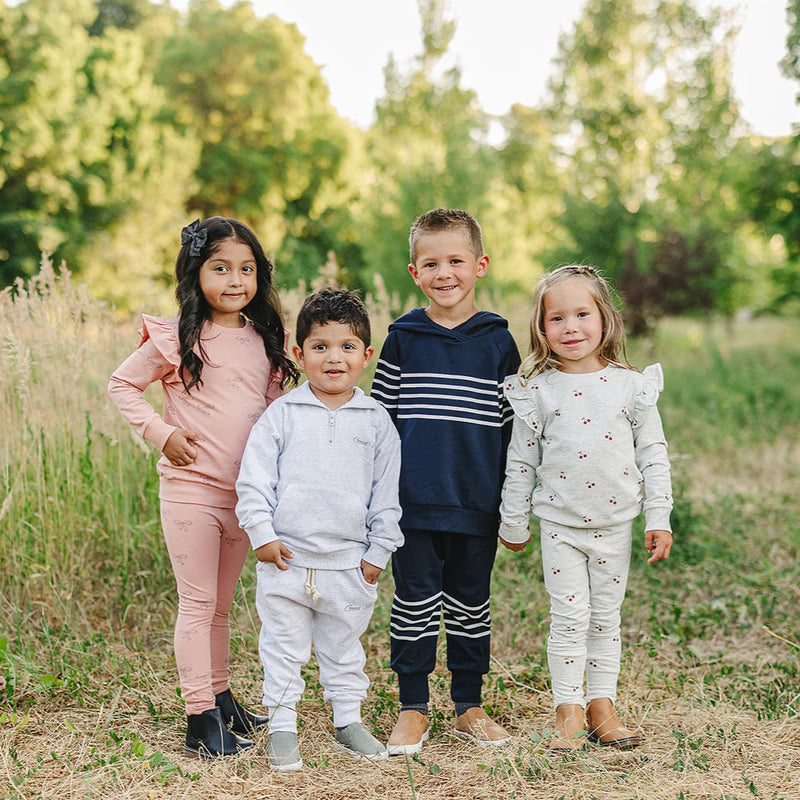 Cozy up in classic stripes! This French terry hooded set is made for active days, laid-back moments, and everything in between.
