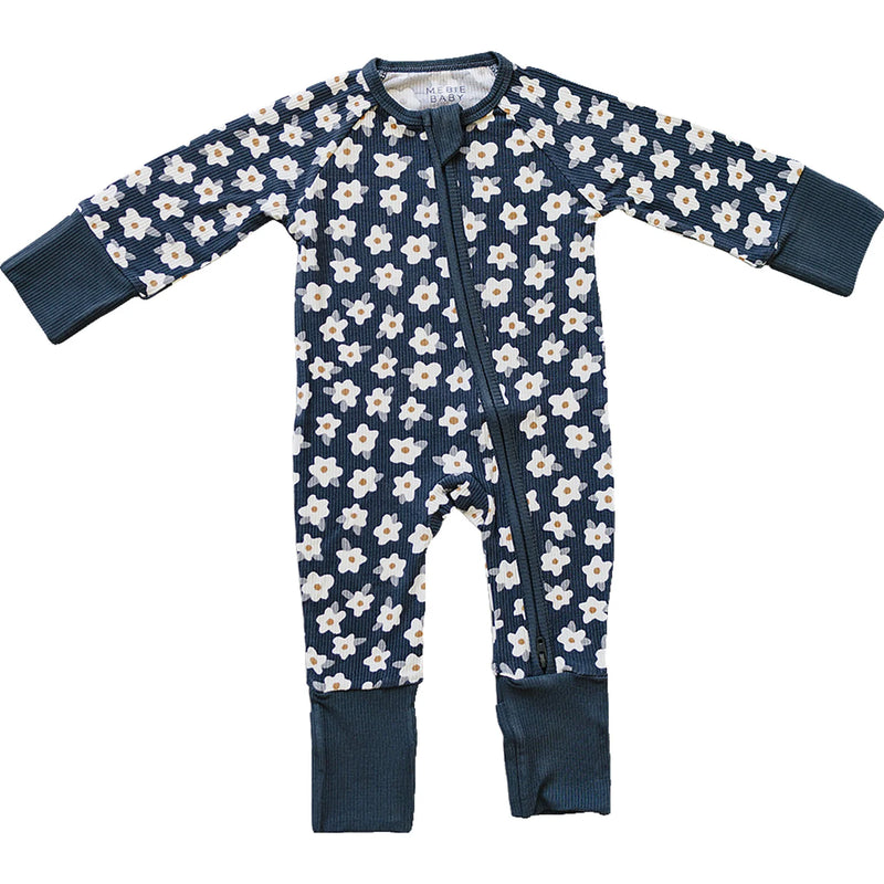 Mebie Baby Ribbed Bamboo Zipper Pajama - Navy Daisy