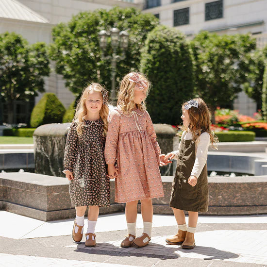 Classic charm meets sweet detail in the Vintage Pink Floral Dress. With its delicate print and timeless accents, it’s a lovely choice for everything from playdates to picture days.