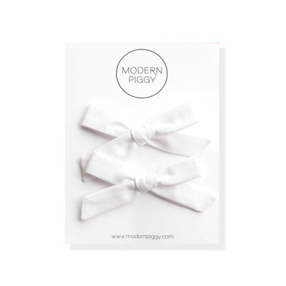 This set includes of two sweet and simple hand-tied bows. Each bow is made out of a high-quality, cotton fabric and finished on an alligator clip that can easily be rotated to be worn on either the right or left side.