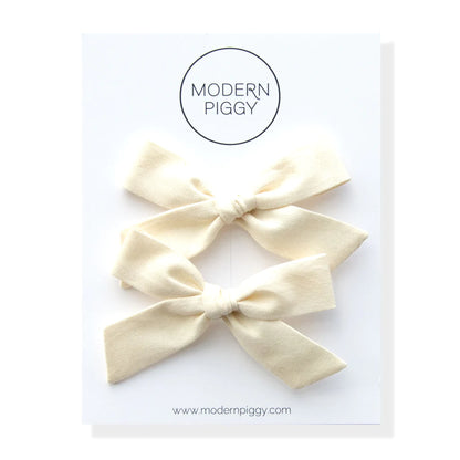 This set includes of two sweet and simple hand-tied bows. Each bow is made out of a high-quality, cotton fabric and finished on an alligator clip that can easily be rotated to be worn on either the right or left side.